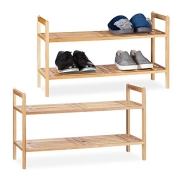 Relaxdays 2 x Schuhregal stapelbar, Schuhablage mit je 2 Etagen, Walnuss Holz, je bis zu 6 Paar Schuhe, HBT 41 x 69 x 27 cm, Natur