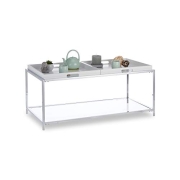 Relaxdays Couchtisch, Flacher Wohnzimmertisch mit 2 Tabletts, eckiger Beistelltisch, HBT 43 x 95 x 49 cm, weiß/Silber