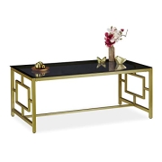 Relaxdays Couchtisch, schwarze Glasplatte, robustes Metallgestell, Wohnzimmertisch, HxBxT 45 x 110 x 60 cm, schwarz-gold