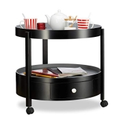 Relaxdays, schwarz-grau Beistelltisch rund, Schubfach und 2 Ablagen, mobiler Couch-oder Nachttisch, HxØ: 56,5 x 62 cm, Standard