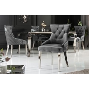 Riess Ambiente Edler Design Stuhl Turin Samt Silbergrau mit Armlehne Esszimmerstuhl Konferenzstuhl