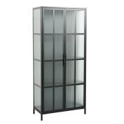 minimalistische Vitrine aus schwarzem Metall und Riffelglas mit viel Stauraum für Deine Wohn- oder Küchenutensilien dekorative Fenstersprossen unterstreichen den industriellen Loft-Stil das…