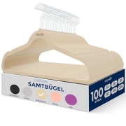 100er Set Samt-Kleiderbügel Naturweiss – Rutschfest…