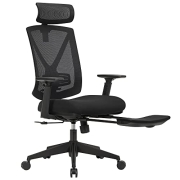 SONGMICS Bürostuhl mit Fußstütze, Ergonomischer Schreibtischstuhl mit Lordosenstütze, verstellbare Kopfstütze und Armstütze, Höhenverstellung und Wippfunktion, bis 150 kg Belastbar, schwarz OBN61BKV1