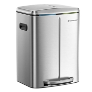 SONGMICS 40 L Mülleimer mit 2 Fächern, 2 x 20 L, Abfalleimer, Treteimer aus Metall, Inneneimer aus Kunststoff, mit Klappdeckel und Griffen, Softclose, luftdicht, silbern LTB40NL