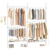 【HOHE LAGERKAPAZITÄT】Mit diesem Kleiderständer mit 4 Kleiderstangen, 2 Ablagen und einer Leiste können Sie den vertikalen Raum optimal ausnutzen. Er bietet Platz bis unter die Decke für Kleidung,…