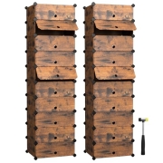 SONGMICS Schuhregal mit 10 Ebenen, 2er Set, Steckregal, Regalsystem, Schuh-Organizer, DIY-Regal, mit Tür, aus PP-Kunststoff, vintagebraun LPC010A02