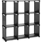 SONGMICS Aufbewahrungsregal mit 9 Fächern, offener Aufbewahrungsschrank, Bücherregal, Organizer für Wohnzimmer, Schwarz LSN45BK