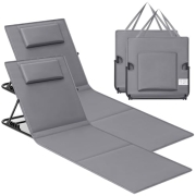 SONGMICS Strandstuhl, 2er Set, Campingstuhl, Sonnenliege, Strandliege, klappbar, verstellbare Rückenlehne, leicht tragbar mit Griff, für Camping, Garten, Pool, 158 x 55 cm, schiefergrau GCB251G01