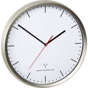 TFA Dostmann Analoge Funk-Wanduhr, 60.3521.02, Rahmen aus Edelstahl, leises Uhrwerk, höchste Genauigkeit, silber, Weiß, L 305 x B 48 x H 305 mm