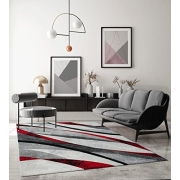 the carpet Monde Moderner Designer Wohnzimmer Teppich, Weicher Kurzflor, Hoch Tief Effekt, handgearbeiteter Konturenschnitt, 3D, Vintage, Wellen Muster, Grau-Rot, 160 x 230 cm