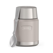 Thermos ICON Food Jar 0,71 l, beige/sandstone mat, Speisegefäß für Essen 710 ml, doppelwandigem 18/8 Edelstahl, hält warm und kalt, mit klappbarem Löffel, rutschfester Boden, absolut dicht