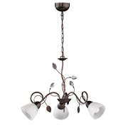 Trio Leuchten Kronleuchter 110700328 Traditio, Metall rostfarben antik, Glas in weiß, exkl. 3 x E14, 70 x 70 x 150 cm