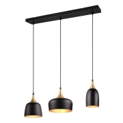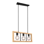 Trio Leuchten Pendelleuchte Agra 313800332, Metall Schwarz matt, Holz, exklusiv Leuchtmittel 3x E27