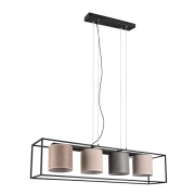 Trio Leuchten Pendelleuchte Ross 303100417, Metall Schwarz matt, Schirm Stoff Beige/Grau/Braun, exkl. 4x E27