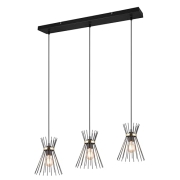 Pendelleuchte Rod 3-flammig in Metall Schwarz matt/goldfarbig Leuchte ohne Leuchtmittel. Empfohlenes Leuchtmittel 3x E27 max. 40 Watt Die Leuchte hat eine Breite von 82cm, die Höhe der einzelnen…