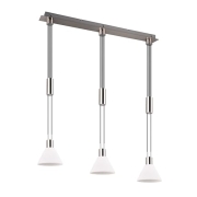 Pendelleuchte Ontario 3-flammig in Metall Nickel matt mit Gläsern in silberfarbig-foliert Leuchte exklusive Leuchtmittel. Passendes Leuchtmittel 3x E14 max. 40 Watt Die Höhe der Pendel kann…
