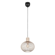 Trio Leuchten Pendelleuchte Elmau 302100130, Holz Pinie, Stoffschirm beige, Stoffkabel schwarz, exkl. 1x E27, Nickel Antik