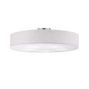 Deckenleuchte Hotel in Metall Nickel matt und einem Stoffschirm in der Farbe Weiß Der Schirm ist nach unten mit einem Diffusor geschlossen, sodass das Licht blendfrei im Raum verteilt wird Leuchte…