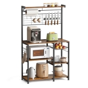 VASAGLE Küchenregal, Standregal, Regal, Kücheninsel mit Magnetleiste für Messer, Drahtkorb, Küchenrollenhalter, 12 Haken, vintagebraun-schwarz KKS026B01