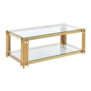 Couchtisch - Sicherheitsglas & Edelstahl - Goldfarben - NOMELANO