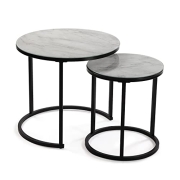 Versa Eiffelton Beistelltisch für das Wohnzimmer, Schlafzimmer oder die Küche. Moderner, niedriger Tisch, Satz von 2, Maßnahmen (H x L x B) 45 x 50 x 50 cm, Glas und Metall, Farbe: Weiß und Schwarz