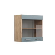 Vicco Küchenglasschrank R-Line, Glashängeschrank, Blau-Grau/Goldkraft Eiche, 80 cm