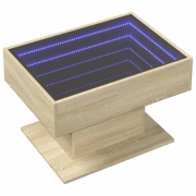 vidaXL LED Couchtisch, Beistelltisch mit LED-Infinity-Spiegel, Kaffeetisch Sofatisch für Wohnzimmer, Wohnzimmertisch, Sonoma Eiche Holzwerkstoff