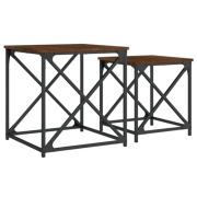 vidaXL Satztische 2 STK., Satztisch Couchtisch mit Metallrahmen, Beistelltisch Sofatisch für Wohnzimmer Schlafzimmer Büro, Tisch Kaffeetisch, Braun Eichen-Optik Holzwerkstoff