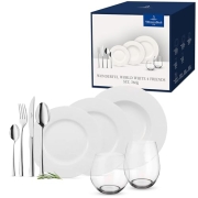 Villeroy und Boch - Wonderful World White 4 Friends Tafel Set, 36 tlg. Service für Feste, Premium Porzellan, weiß, 18/10 Edelstahl, Kristallglas