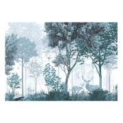 WallArena - Vlies Fototapete Kinderzimmer 254x184 cm Wald Tiere Mädchen Kinder Bäume Skandinavisch Babyzimmer - Fototapeten Tapeten für Kinder Kindertapete - Vliestapete Wandtapete Tapete 3D Effekt