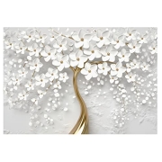 WallArena - Vlies Fototapete Blumen 3D Effekt weiß gold Baum 416x254 cm - Fototapeten - Tapeten - für Wohnzimmer Schlafzimmer - Vliestapete Wandtapete Tapete 3D Effekt- inkl. Kleister