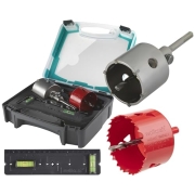 1 Bohrkrone, HM, mit Spanndorn SDS-plus, Ø 68 mm, Schnitttiefe 46 mm, für Beton, Mauerwerk und Stein, TÜV-geprüft 1 Bi-Metall-Lochsäge, Ø 68 mm, Schnitttiefe 40 mm für Holz, Kunststoff, Metall,…