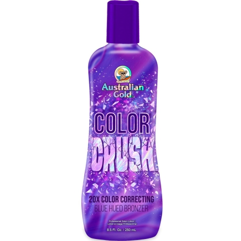 Deze Australian Gold 'Color Crush' zonnebankcrème met 20X kleurcorrigerende 'Blue Hued Bronzing Blend' is samengesteld met Instant Bronzers (inclusief Melanine en zwarte walnoot) en cosmetische bronzers. De bronzers zijn gecombineerd met kleurstoffen die onmiddellijke resultaten opleveren. Terwijl ze ook helpen om oranje tinten in de huid te compenseren voor een vlekkeloze, natuurlijke en egale donkere kleur. Saffloer- en olijfolie, siliconen, cafeïne en bessenextract helpen de algehele huidtextuur te versterken, te voeden en te verbeteren. Pure hennepzaadolie verzorgt en hydrateert voor een stralende teint, terwijl de anti-aging formule met het vitamine-elixer lijntjes en rimpels tegengaat.