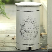 All Chic Retro Eisen Mülleimer Runde Vintage Mülleimer mit Schmiedeeisen Pedal Küche Mülleimer mit Deckel für Park Garten Badezimmer Schlafzimmer Indoor Outdoor ,17 Liter/4,5 Gallonen,Weiß
