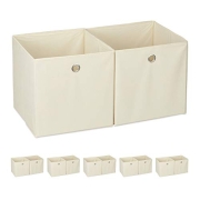 12 x Aufbewahrungsbox Stoff, quadratisch, Aufbewahrung für Regal, Stoffbox in Würfelform, HxBxT: 30 x 30 x 30 cm, beige