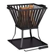 Relaxdays Feuerkorb XL mit Schürhaken, Terrasse u. Garten Feuerschale mit Unterlage, für Holz, HBT 56x56,5x45cm, schwarz