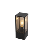 Qazqa - Modern Stehende Außenleuchte I Sockelleuchte schwarz mit Rauch 40 cm IP44 - Charlois I Außenbeleuchtung - Aluminium Rechteckig - LED geeignet E27