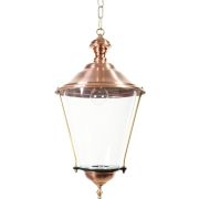 Landelijke kettinglamp, geleverd met messing ketting. De deksel is in een hoogwaardige kwaliteit koper uitgevoerd. De lamp beschikt over echt glas en een E27 fitting en is dus LED geschikt. Staat…