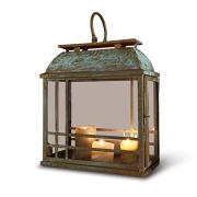 Loberon Laterne Eglise, Antik-Finish, Zeitloses Design, mit Henkel und Türchen, für innen und außen, Dekoration, Glas, Eisen, antikbraun