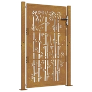 vidaXL Gartentor, Gartentür mit Bambus-Design, Abschließbar Hoftor Eingangstor für Garten Terrasse, Tor Zauntor Gartenpforte, 85x125 cm Cortenstahl