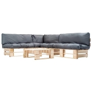 vidaXL Holz Garten Palettensofa 4-TLG. Grau Palettenkissen Sofagarnitur Ecksofa Gartensofa Lounge Gartenset Gartenmöbel Palettenmöbel In/Outdoor