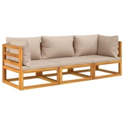 vidaXL Garten Lounge Set 3-TLG., Gartenmöbel Set mit Taupe Kissen, Sitzgruppe für Garten Terrasse, Modular Sofa Garnitur Loungemöbel, Massivholz
