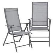 [en.casa] Gartenstuhl Kalamata 2er Set Hochlehner mit Armlehnen Gartenstühle 105 x 57 x 68 cm Balkonstuhl klappbar Klappstuhl Terassenstuhl Verstellbare Rückenlehne Metallgestell Dunkelgrau
