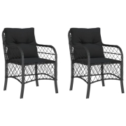 vidaXL Gartenstuhl mit Kissen 2 STK., Sessel für den Außenbereich, Gartensessel mit pulverbeschichtetem Stahlrahmen, Terrassensessel Outdoor Stuhl, Schwarz Poly Rattan