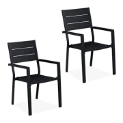 Relaxdays Gartenstuhl 2er Set, HBT 90 x 53,5 x 59 cm, Balkonstühle m. Armlehnen, Metall, Moderne Terrassenmöbel, schwarz