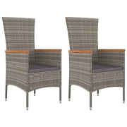 vidaXL Gartensessel 2 STK., Gartenstuhl mit Kissen Stahlrahmen, Loungesessel für Außenbereich, Stuhlset, Verstellbar Grau Poly Rattan