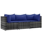 vidaXL Garten Lounge Set 3-TLG., Gartenmöbel Set mit Kissen, Sitzgruppe für Garten Terrasse, Modular Sofa Garnitur Loungemöbel, Grau Poly Rattan