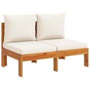 vidaXL Gartensofa ohne Armlehne 2-Sitzer, Gartensessel mit Kissen, Modular Loungesofa für Garten Terrasse, Sofa Garnitur Gartenmöbel, Massivholz Akazie