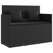 vidaXL Gartenbank mit Kissen, Sitzbank mit Staufach unter Sitzfläche, Parkbank mit abnehmbaren Bezügen, Außenbank Outdoor Bank, Schwarz Poly Rattan